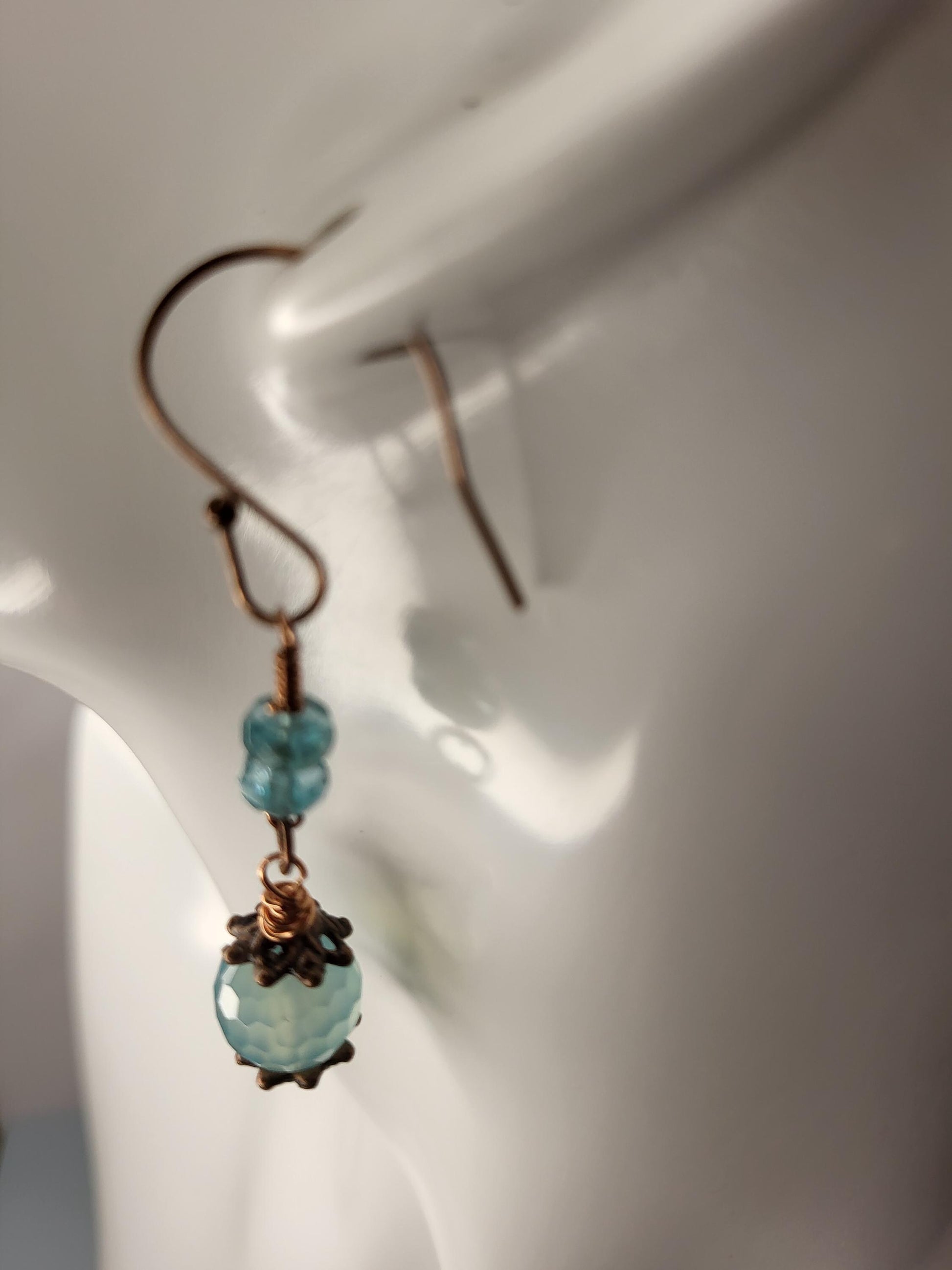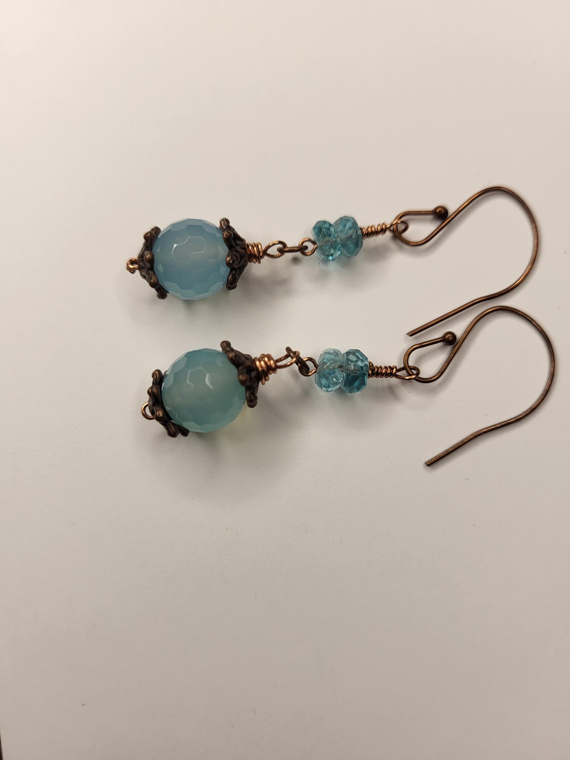 Blue Fire Agates and Apatite Beads, Copper wire earrings