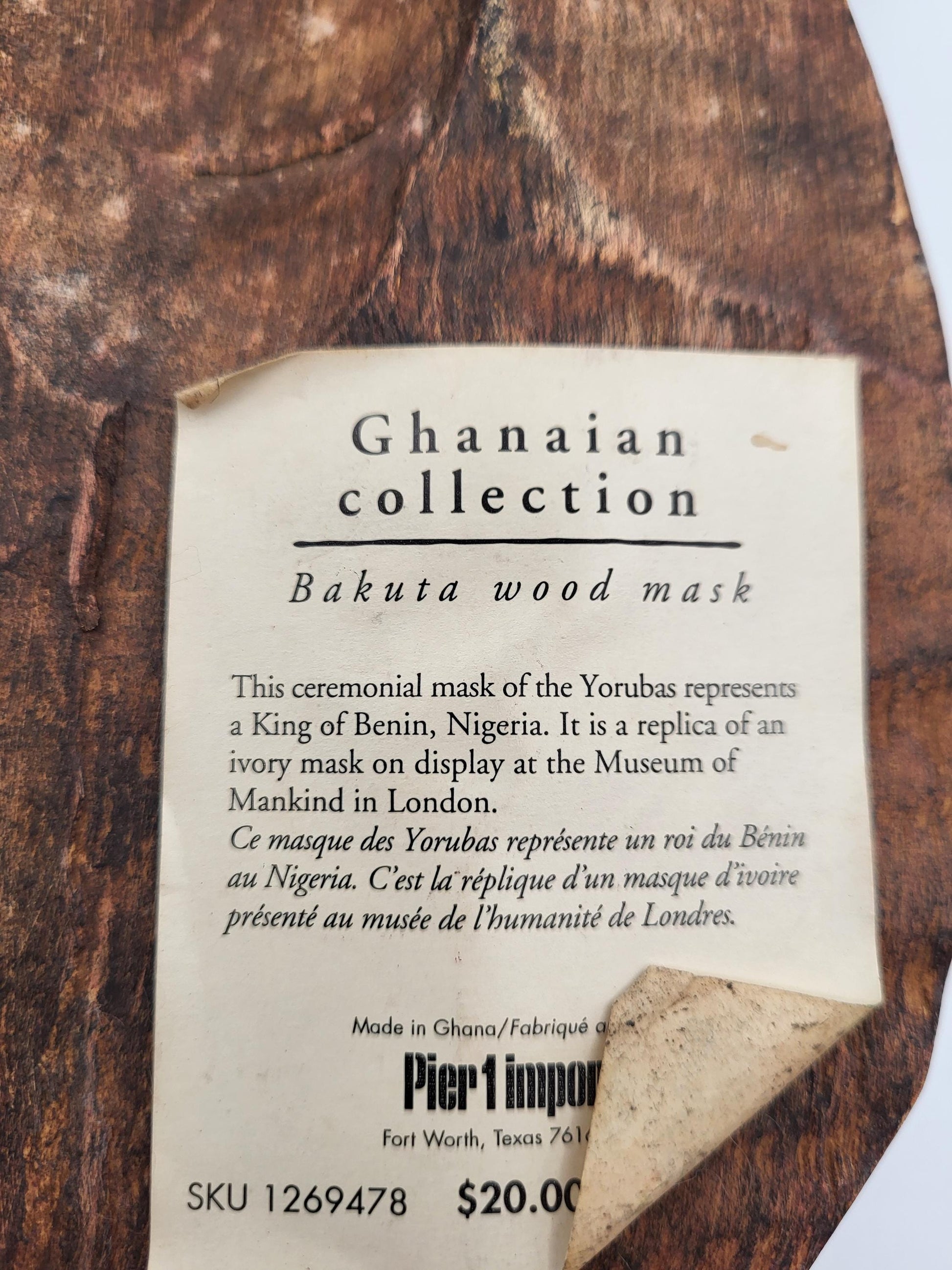 Vintage Ashanti Ghanaian Hand Carved Wood Mask. This would make a great gift for a collector. This is a beautifully carved and beaded piece. Bakuta wood mask is a ceremonial mask of the Yorbas representing the Kin of Benin, Nigeria. This is a Replica of one on display in London.