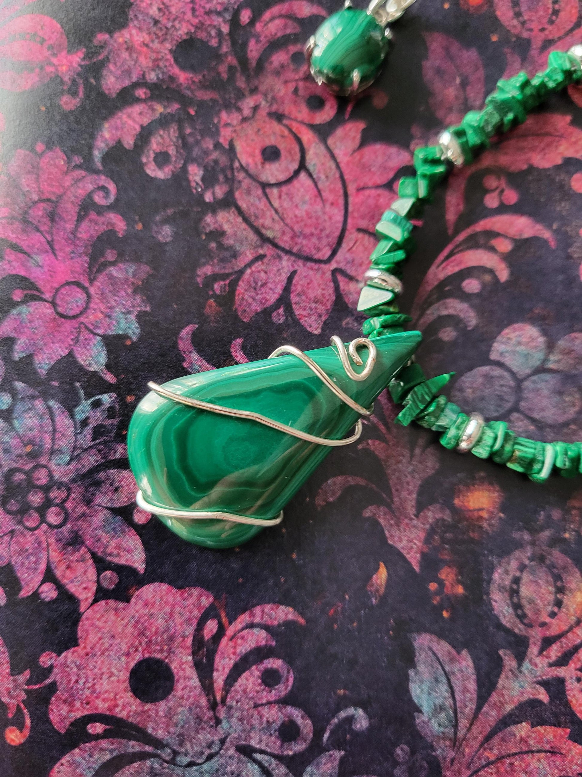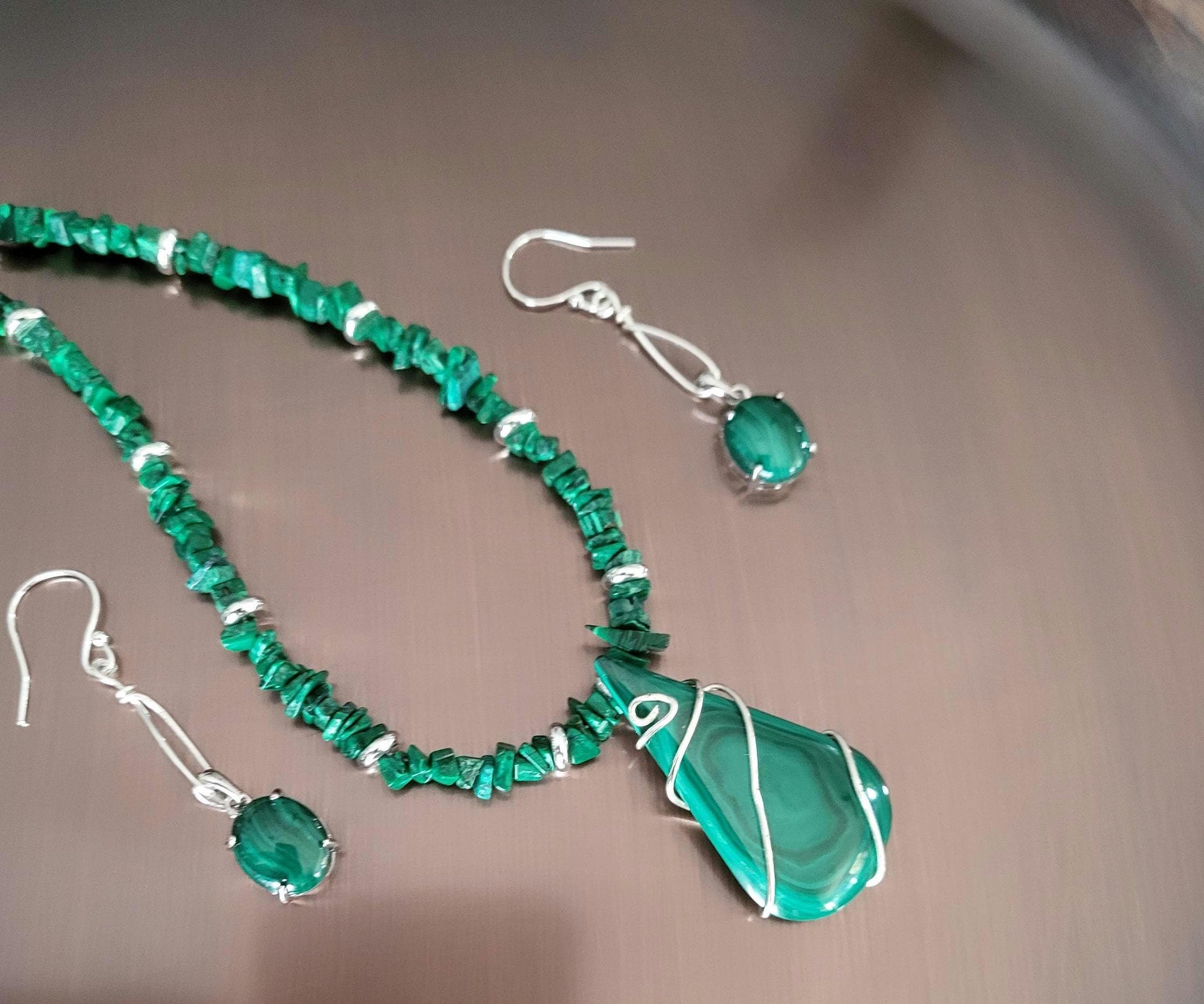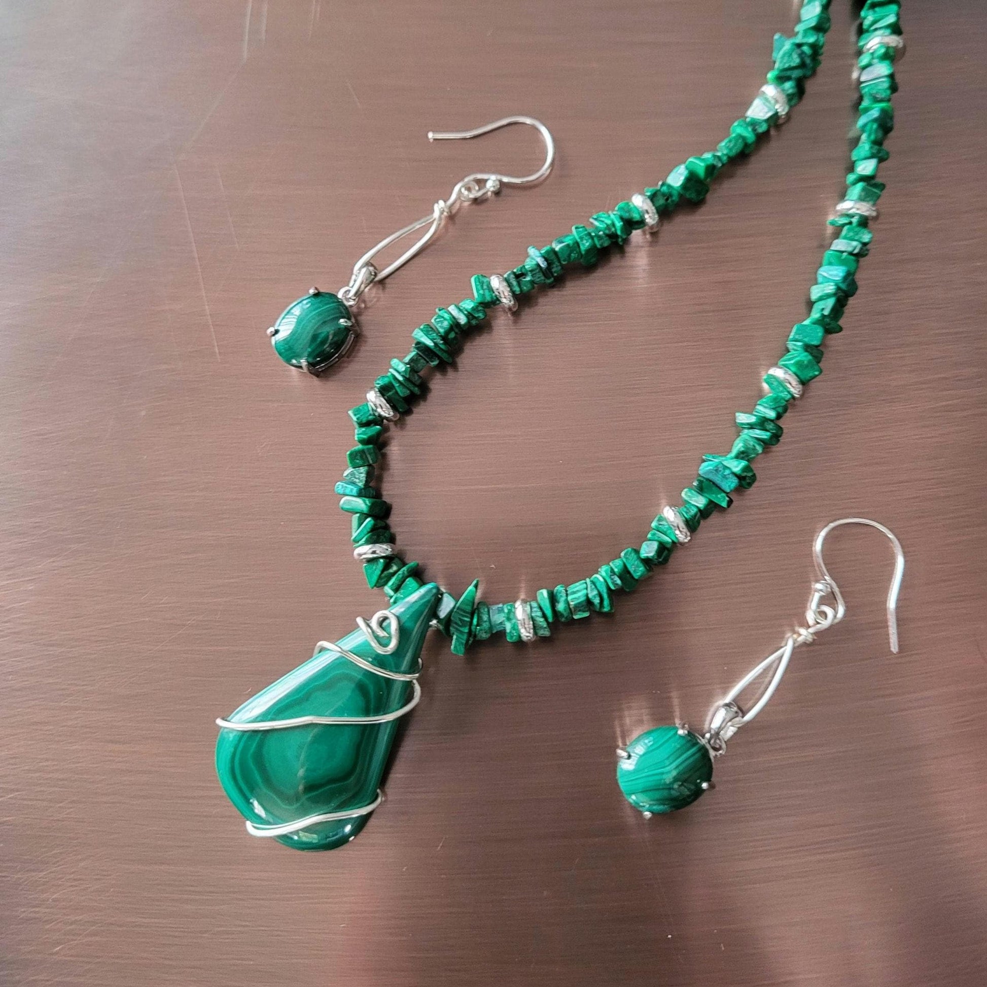 Malachite and Silver Necklace and Earrings Handmade