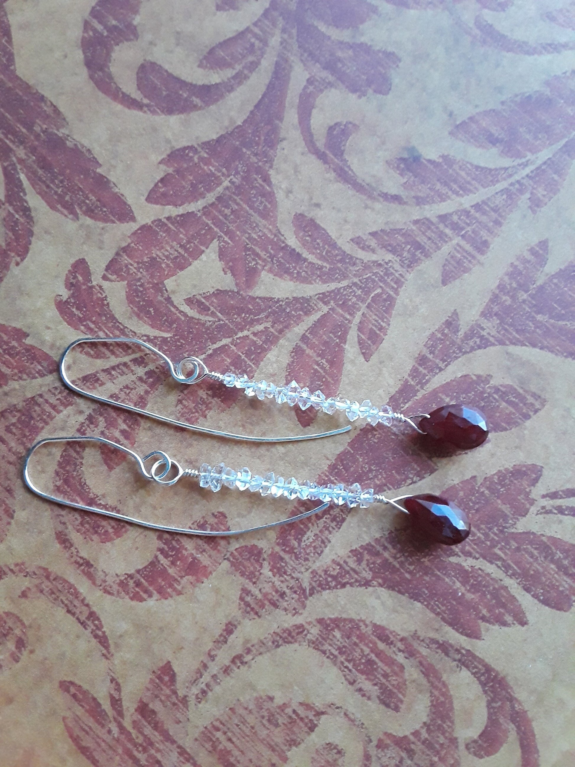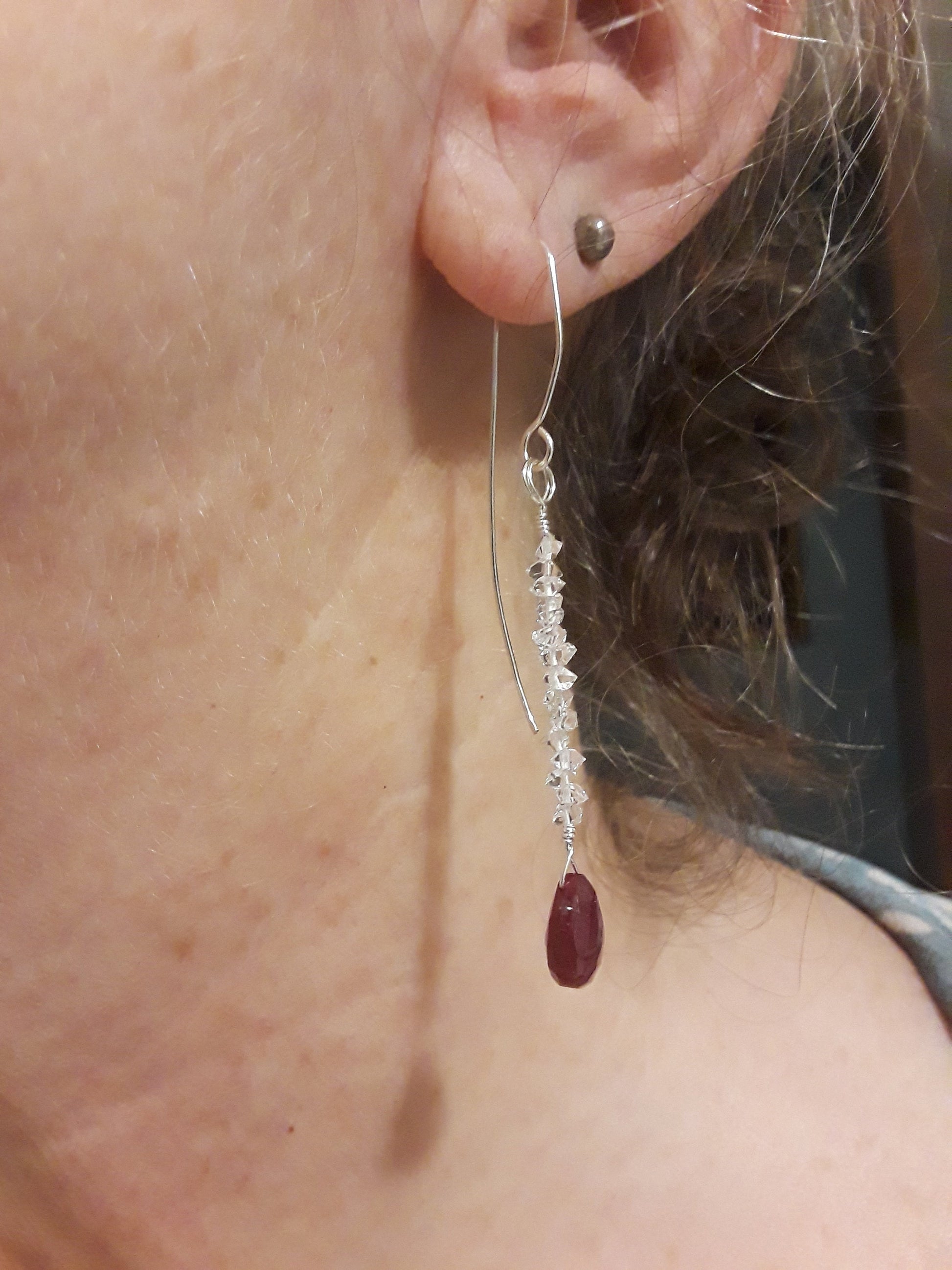 Ruby and Diamond Cascade Earrings with Silver wire.